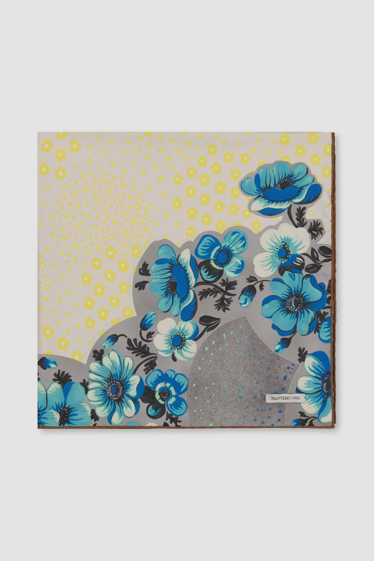 Margareth by Mantero is a romantic scarf adorned with a floral motif inspired by the 1950s. It bestows the silk with a velvety, elegant, vintage-like texture.