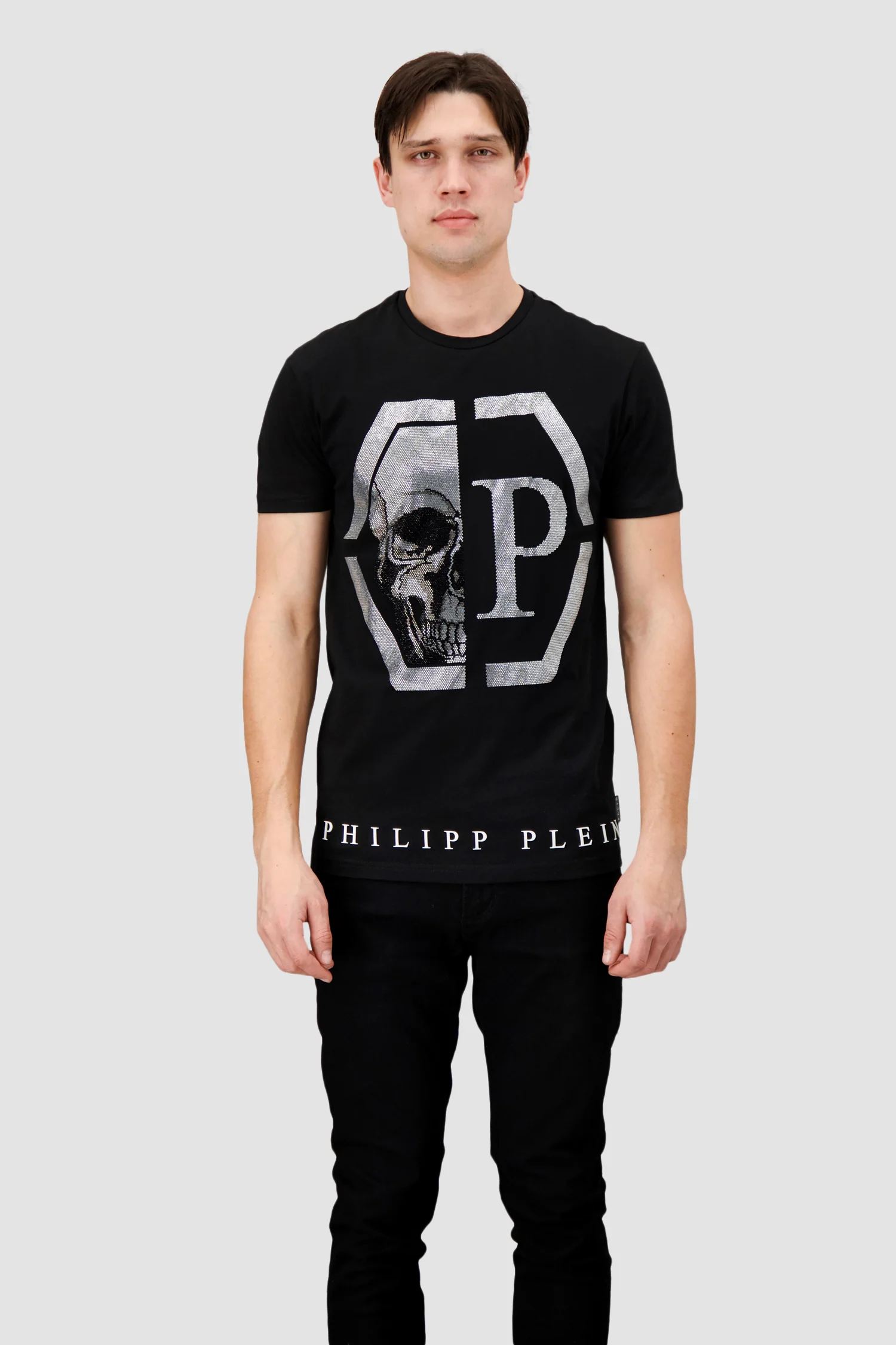 Embrace the allure of Philipp Plein with this SS Hexagon cotton t-shirt. Adorned with the brand's iconic symbols, the skull and hexagonal logo, in dazzling rhinestones, this t-shirt exudes an effortless blend of edgy sophistication and timeless style.